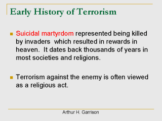 humanity by the victims of the countries attacked. Arthur H. Garrison, How the World Changed: a History of the Development of Terrorism, presented at Delaware criminal Justice Council Annual Retreat, Oct 28-29, 2001 |