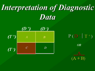 examination (Knapp and Miller, 1992). - Predictive Value Positive: “ . . . probability that an individual with a positive test result has the disease. It is also the proportion of diseased individuals in the population of individuals with a positive test result. PVP is also known as the posterior probability, positive predictive value or posttest probability or disease” (Knapp and Miller, 1992).- Formula: P (D + / T +) OR A / (A + B) |