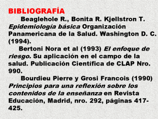 Buss Paulo Marchiori (2001) La perspectiva de la Asociación Latinoamericana y del Caribe de Educación en Salud Pública en Educación en Salud Pública. Nuevas perspectivas para las Américas. Organización Panamericana de la Salud. Oficina Sanitaria Panamericana, Oficina Regional de la Organización Mundial de la Salud. División de Desarrollo de Sistemas y Servicios de Salud. Programa de Desarrollo de Recursos Humanos. Organización Lantinoamericana y del Caribe de Educación en Salud Pública (ALAESP).