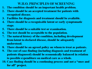 Wilson JMG, Junger G. Principles and Practice of Screening for Disease. WHO Public Health Papers 1968; No.34