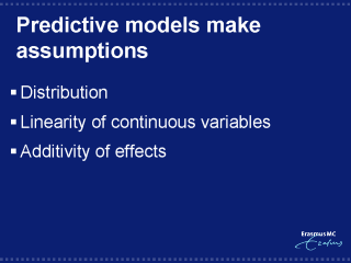are related to the distribution of the outcome, the linearity in effects of continuous