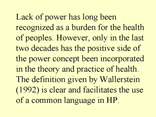 It states: “A social-action process that promotes participation of people, organizations, and communities towards the goals of increased individual and community control, political efficacy, improved quality of community life, and social justice” (p.198).