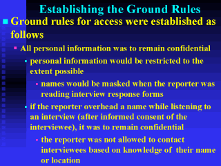 Keeping information confidential is the most important and difficult part of the process of allowing access. At the same time, the media have a long history of protecting sources. This makes it easier for media staff to understand and accept these rules. |