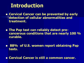 | Read first two bullets The availability of such an effective screening device, reportedly used by 88 percent of U.S. women, should lead to a greatly reduced rate of cervical cancer. Although the incidence of cervical cancer has been decreasing, it is still the fourth most common cancer afflicting women in the United Sates, and the sixth leading cancer killer. The American Cancer Society estimates there were 12,800 new cases of cervical cancer and 4,600 deaths from cervical cancer in 2000. These figures are particularly discouraging, because cervical cancer is one of the most preventable cancers. |