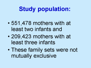 least two singleton infants and 209,423 mothers with at least three singletons, first