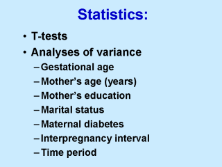 gestational age, and to evaluate and adjust for confounding by: Maternal age (<20,