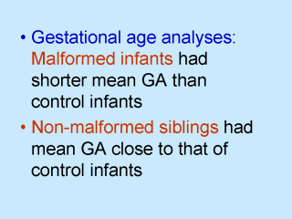 Their non-malformed siblings, on the other hand, had mean gestational ages in the same range as their counterparts in unaffected families, as was their risk of preterm birth.