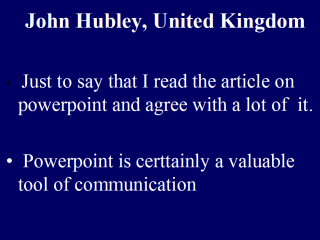 niggles. Firstly the golden rule of giving a powerpoint presentation is to