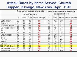 Highlighted row indicates largest difference between attack rates.