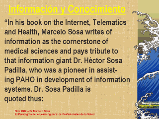 time, subjects and objects… in the context of decisions that should be taken is what constitutes the true information for the planner, the legislative body, the managerial level or the technician. I will constantly stress the fundamental difference between information and knowledge. The creation of knowledge is a highly personal matter and I am to be convinced that we ever transmit knowledge as such.”