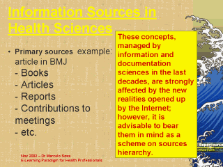| Secondary sources example : reference in Index Medicus - Indexes - Abstracts magazines - etc.Terciary sources example: reference and abstract in Medline - Data bases |