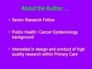 Research Fellow based in the Department of Primary Care and General Practice at the
