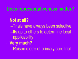 1993) Similarly, trials in any setting are rarely fully representative