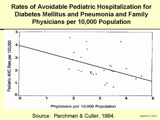 primary care should reduce hospitalization rates. Source: Parchman ML, Culler S. Primary care physicians and avoidable hospitalizations. J Fam Pract 1994; 39(2):123-128. |