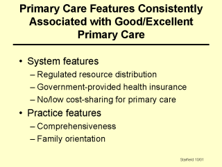 countries that are poor in primary care orientation. Three are features of health policy