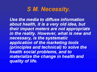 | In this respect, SM, in spite of being relatively new as for their global focus, is obtaining good results and, consequently, it is gradually becoming an important part of projections and programs on health in many countries, as for their indicators and quality of life. |
