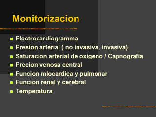 El monitoreo hemodinámico del paciente que va a ser sometido a cirugía y anestesia es un recurso indispensable, ya que la mayoría de estos pacientes conllevan un riesgo de alteración fisiológica tanto en el transoperatorio como en el postoperatorio. Aunque existe controversia en cuanto a la aplicación de las diferentes formas de monitoreo, se considera que la mayoría de las ocasiones ésta será determinada por la patología del paciente, así como su estado físico valorado por las escalas de riesgo tanto anestésicos como quirúrgicos a efectuarse.     La monitorización hemodinámica del cardiópata que va a ser llevado a cirugía bajo anestesia debe de incluir: