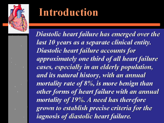 dysfunction in congestive heart failure. N Engl J Med 1991; 325: 1557–64. 2. Lorell BH. Significance of diastolic dysfunction of the heart. Annu Rev Med 1991; 42: 411–36. 3. Bonow RO, Udelson JE. Left ventricular diastolic dysfunction as a cause of congestive heart failure. Mechanisms and management. Ann Intern Med 1992; 117: 502–10. 4. Brutsaert DL, Sys SU, Gillebert TC. Diastolic failure: pathophysiology and therapeutic implications. J Am Coll Cardiol 1993; 22: 318–25. 5. Gaasch WH. Diagnosis and treatment of heart failure based on left ventricular systolic or diastolic dysfunction. JAMA 1994; 271: 1276–80. 6. Brutsaert DL, Sys SU. Diastolic dysfunction in heart failure.J Cardiac Failure 1997; 3: 225–42. 7. Echeverria HH, Bilsker MS, Myerburg RJ, Kessler KM.Congestive heart failure: echocardiographic insights. Am Med 1983; 75: 750–5. 8. Dougherty AH, Naccarelli GV, Gray EL, Hicks C, Goldstein RA. Congestive heart failure with normal systolic function. Am J Cardiol 1984; 54: 778–82. 9. Soufer R, Wohlgelernter D, Vita NA et al. Intact systolic left ventricular function in clinical congestive heart failure. Am Cardiol 1985; 55: 1032–6. 10. Wheeldon NM, Clarkson P, MacDonald TM. Diastolic heart failure. Eur Heart J 1994; 15: 1689–97.. 11. Cohn JN, Johnson G. Heart failure with normal ejection fraction. The V-HeFT Study. Circulation 1990; 81: III-48 III-53. 12. Vasan RS, Benjamin EJ, Levy D. Prevalence, clinical features and prognosis of diastolic heart failure: an epidemiologic perspective. J Am Coll Cardiol 1995; 26: 1565–74. |