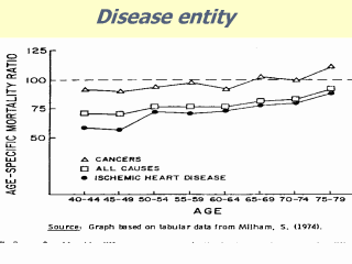 | (Study from united brotherhood of carpenters and joiners of America (Milham 1974)). Non-symptomatic diseases (cancer) have lower HWE since the employers can not identify the health of the individuals. On the other hand cardiovascular disease can manifest fairly early in life thus interfere with employment. Another example is obesity which is easily identified and exclude from the workforce. |