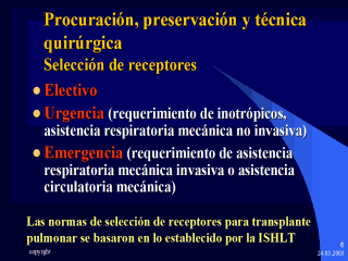 Las normas de selección de receptores para transplante pulmonar se basaron en lo establecido por la ISHLT (10)