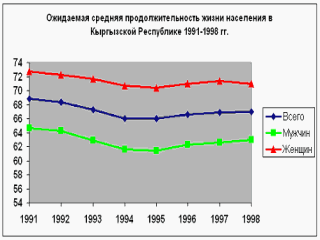 жизни мужчин составила 63.1 года, женщин - 71.2, что