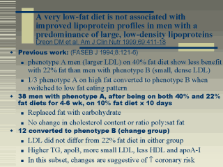 Certain study participants (phenotype A) were vulnerable to detrimental changes in coronary risk factors when placed on a low fat eating pattern.
