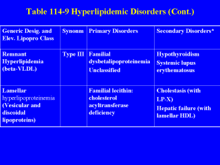 associated with VLDL or beta-VLDL are aggravated by hypertrophic obesity + Denote mixed hyperlipemia caused by severe, prolonged insulin deficiency. - Parentheses indicate conditions that frequently aggravate a primary hyperlipidemia Some cases of primary hypertriglyceridemia (mild form) are presented as mixed hyperlipemia. - Bracket indicates secondary disorders that can cause type IV or type V hyperlipidemia. |