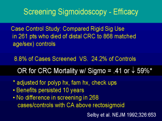 sigmoidoscope. Basically, they looked at people who died of distal cancer compared to
