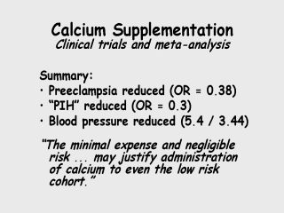 meta-analysis, preeclampsia was reduced by about half. Increases in blood pressure, which