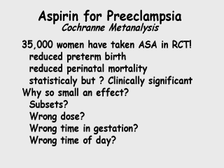 have now taken aspirin. There is evidence that there's reduction in preterm births and in