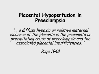 The suggestion that this may be important dates back to the late 1940’s. Ernest Page said, much more eloquently than I can, that a reduced perfusional placenta predisposes a subset of women to develop preeclampsia. Every women has a placenta, but only 5% get preeclampsia, and the idea is that those 5% have reduced perfusion.