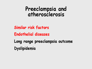 | We’ve been intrigued by this relationship. Similar risk factors. Vascular endothelia is a target in preeclampsia and atherosclerosis may well be the prototype disease for the endothelia being modified and resulting in these changes. |