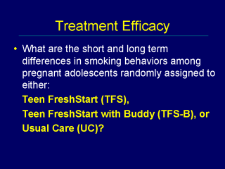 TFS consisted of an 8 week group protocol to promote & maintain smoking cessation during pregnancy.