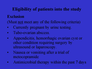 The exclusion criteria were mostly on the basis of safety issues. So we, importantly, did not include women who had severe PID, i.e., women who might require surgery.