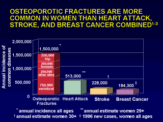 the incidence of osteoporotic fracture in women is far greater than the incidence of heart