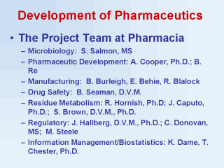 Deluyker, D.V.M., Ph.D., M. Wachowski - Marketing: D. Ricke, C. Roeder, J. Luchsinger, D.V.M. - Technical Service: B. Beachnau, D.V.M.; A. Belschner, D.V.M.; G. Neubauer, D.V.M.; J. Ver Steeg, D.V.M.; R. Saltman, D.V.M.; J. Olson, D.V.M.