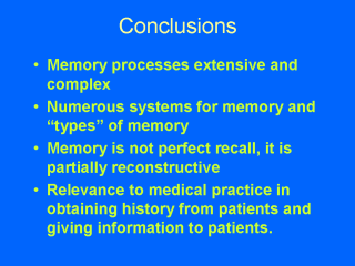 conclusion, there are complex and extensive aspects to memory, but also discreet and
