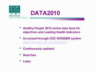 To access web page for DATA2010 Click "http://wonder.cdc.gov/data2010" on the slide. At the CDC Wonder login screen, enter your Wonder user ID or select Anonymous User |
