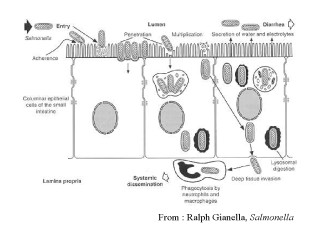 multiplying, and slowly penetrating into the columnar cells and the Peyers