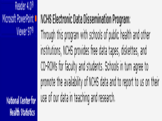 http://www.cdc.gov/nchs/about/otheract/Educators/unieducators.htm#NCHS Electronic Data Dissemination Program