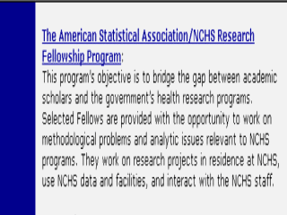 http://www.cdc.gov/nchs/about/otheract/Educators/unieducators.htm#The American Statistical Association/NCHS Research Fellowship Program