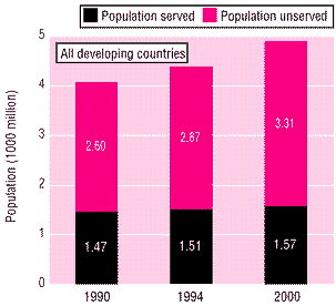 2000 for developing countries, by each major region and in total. In unserved areas faeces