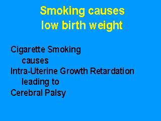maternal smoking. Low birth weight, leading to cerebral palsy and other