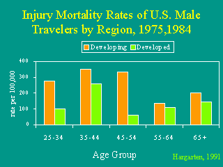 Source: Hargarten SW, Baker TD, Guptill K. Overseas fatalities of United States citizen travelers: an analysis of deaths related to international travel. Annals of Emergency Medicine 20(6):622-626, 1991. |