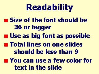 of slide on the web. To stress key words, you might want to use other color than usual text color on the slide. This would improve the readability as well. |