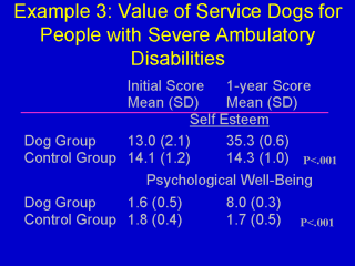 The data displayed on this and the next slide are from a study published in the Journal of the American Medical Association titled “The Value of Service Dogs for People with Severe Ambulatory Disabilities,” Allen K & Blascovich J. 1996. J Amer Med Assoc 275:1001-1006.