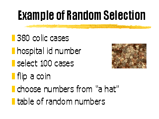 Random selection implies that all animals have an equal opportunity of being selected for participation. This method could be used in conjunction with other methods previously described. |