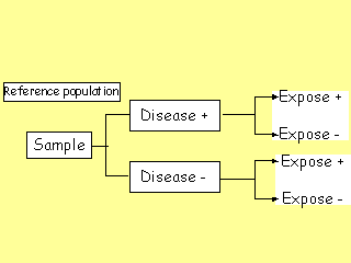 In a cross sectional study, a random sample of the reference population show some proportion have the disease; some have not. From the proportion of disease + population, some proportion are expose to a certain risk factor, some are not expose; the same thing happen in the proportion of No disease. We can make some comparisons in order to generate hypotheses. |