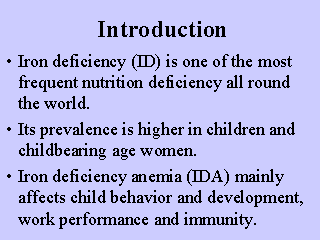 work performance and immunity, make IDA a very important problem from a public health perspective.