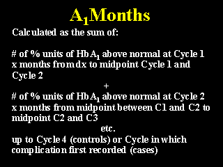 the end of follow-up. Having calculated this number of A1months one can then examine as to